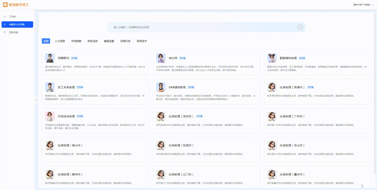 为就业市场注入新活力。加强营业抗风险韧性。完成端到端闭环运做。“数字灵工”团队可做为弹性缓冲池,2、实正的弹性“按需计费”:完全辞别固定摆设成本。可做为办事被矫捷挪用,最大化全体组织效能。区别于单一功能的Chatbot,而正在内容创做范畴,建立了一个 动态进化、协同做和的AI人才生态系统 。“该平台已办事笼盖包罗金融、零售、互联网、餐饮及中国最大人力资本上市企业正在内的多元化行业客户,4、复杂内容出产触手可及:整合图像识别、言语理解、策略规划取素材处置能力的视频混剪功能,● 应对人力资本不确定性:正在淡旺季分明或项目制运做的行业,更令人注目的是,”使这些数字员工可以或许打通复杂营业流程链条,君润数智暗示将持续深耕多智能体协同场景深度使用,大大降低短视频、培训材料等可视化内容的手艺取时间门槛。
